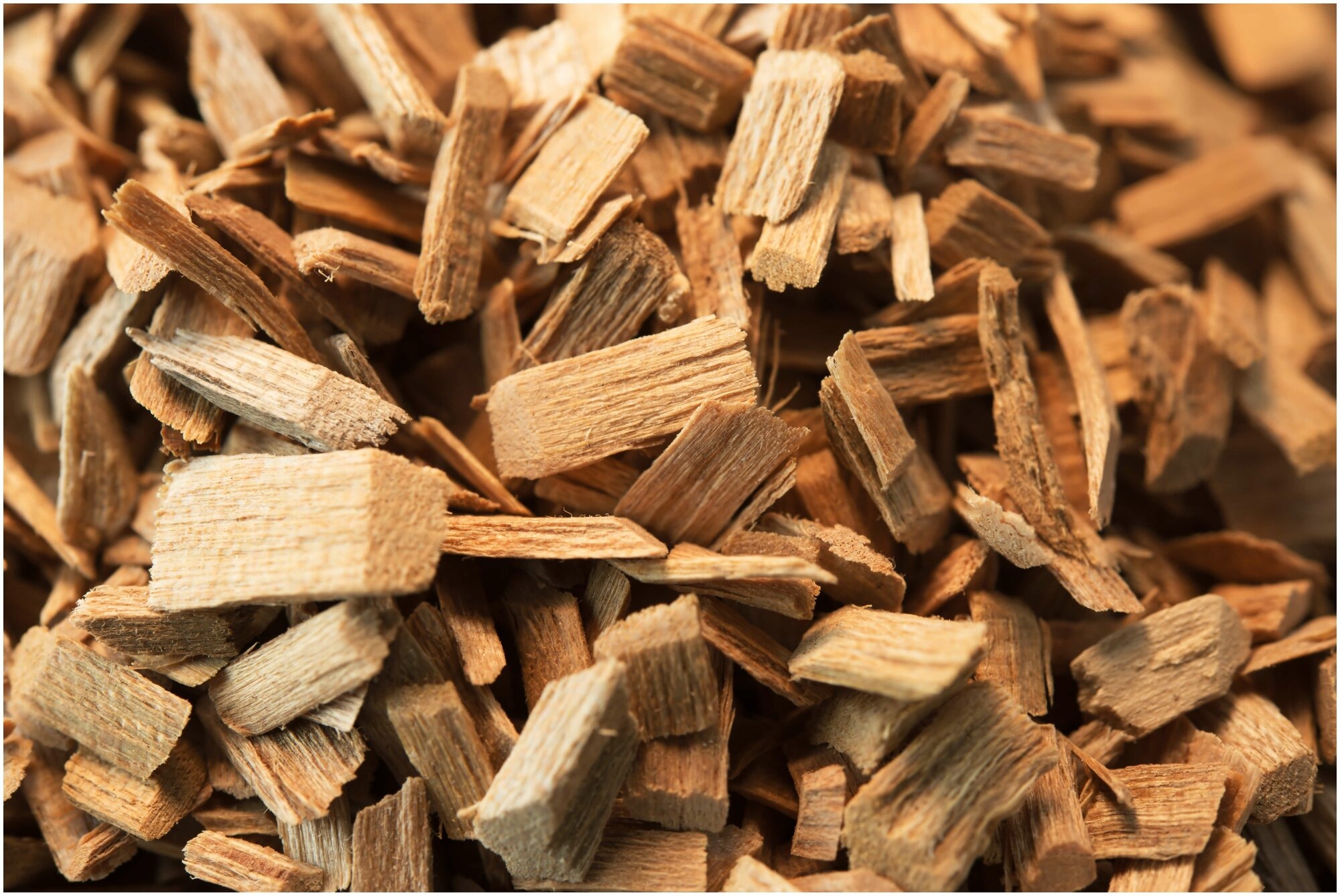 Holzhackgut ist geschreddertes Holz, das als Biomassebrennstoff für Heizsysteme oder als Mulch im Landschaftsbau verwendet wird.
